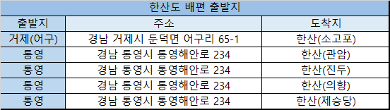 한산도 배편 상세정보