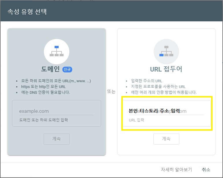 2. URL 접두어 주소란에 본인 블로그 주소를 입력.