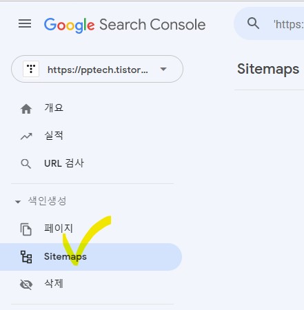 9. RSS와 Sitemap 등록하기 위해 구글 서치 콘솔에서 'Sitemaps' 메뉴를 선택