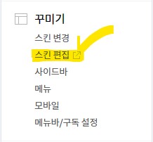 5. 본인의 티스토리 블로그 관리페이지의 스킨편집을 선택 후